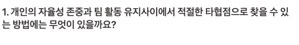 고민되는 지점을 어떻게 접근할 수 있을지 나눠봤으니까 이제 팀별로 나뉘어서 이야기를 해보아라. 그 방법을 시도해보아라.