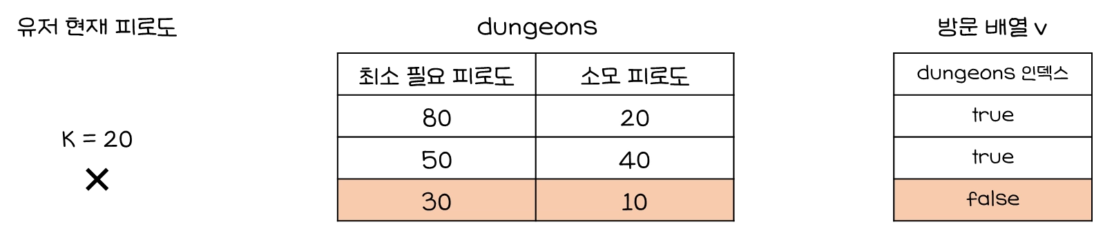 } 를 만나서 두 번째 dungeons 탐색으로 return