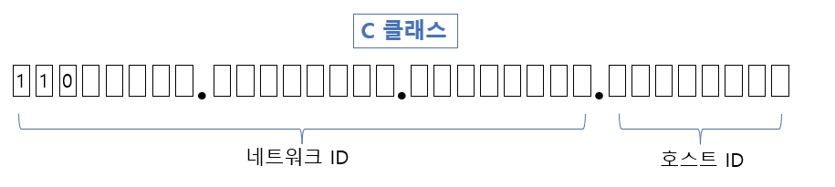 C클래스의 경우 32비트로 표현할 때, 항상 110으로 시작한다.