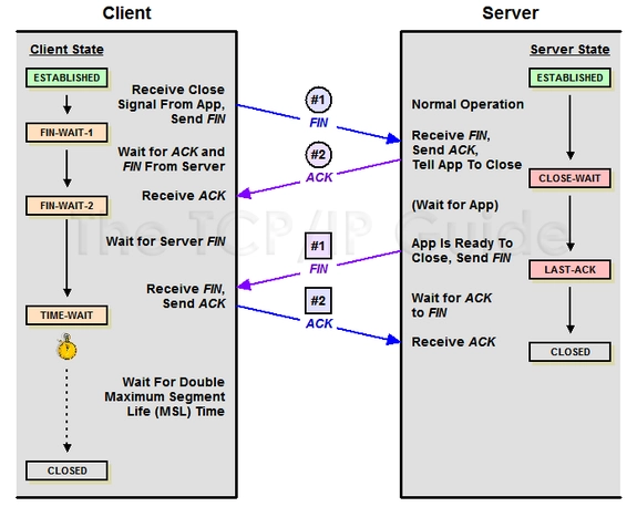 클라이언트 측에서 서버 측으로부터 전송이 끝났다는 신호를 받은 상태이며, 완전히 연결을 해제할 준비하는 상태이다.