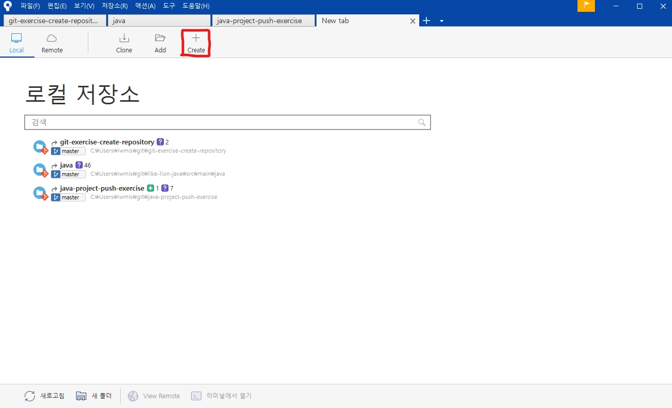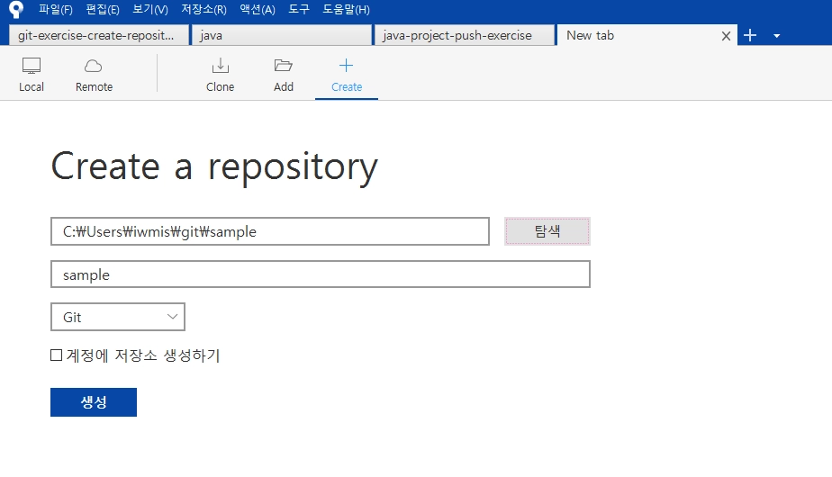 SourceTree에서 Local Repository를 생성한다.