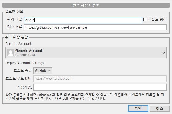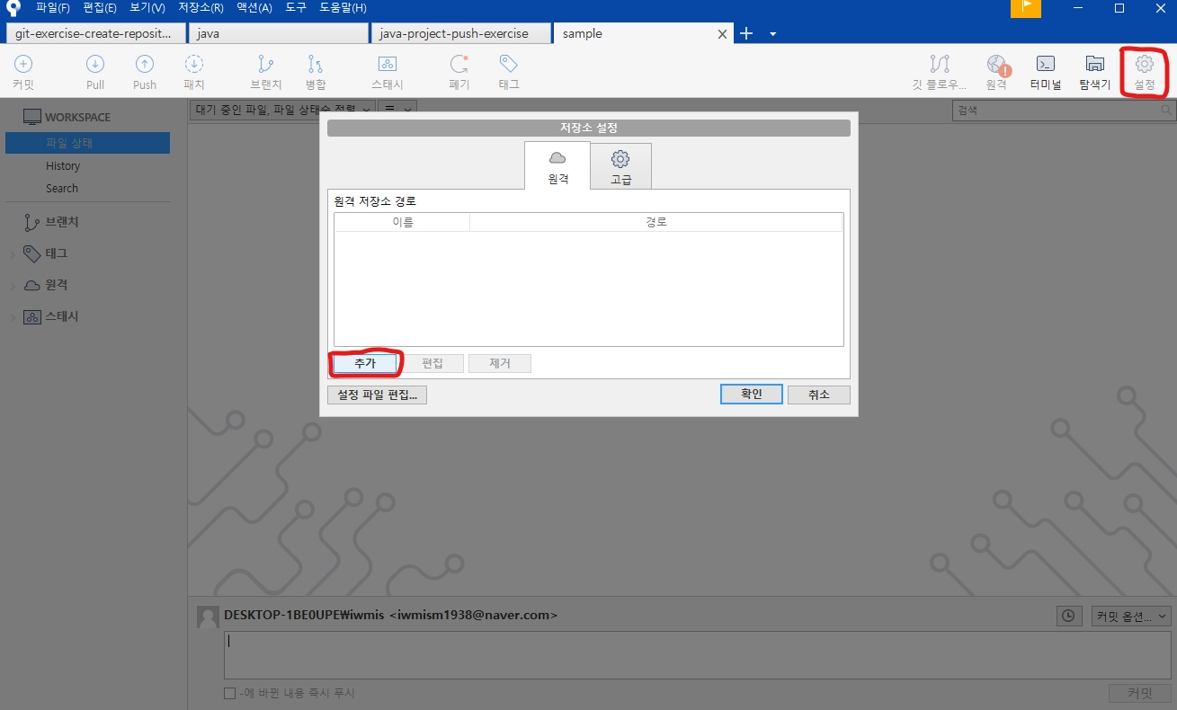 SoureceTree의 설정 → 추가