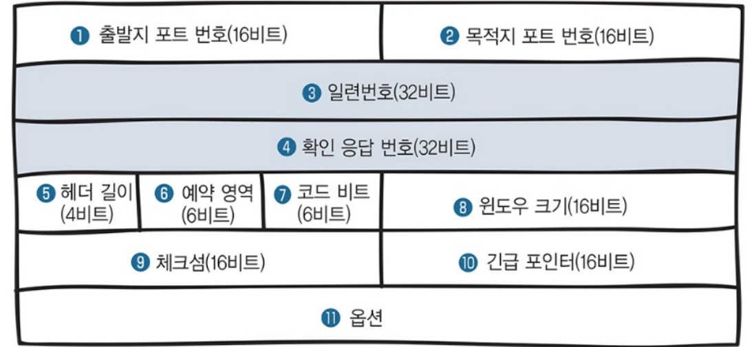 TCP로 전송할 때 붙이는 헤더를 TCP 헤더라고 하고, 이 TCP 헤더가 붙는 데이터를 세그먼트 (segment)라고 합니다. TCP 헤더는 목지까지 데이터를 제대로 전송하기 위해 필요한 정보를 가지고 있습니다.