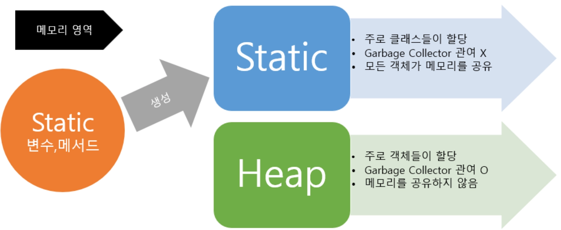 static 키워드를 통해 생성된 static멤버들은 heap영역이 아닌 static영역에 할당된다.