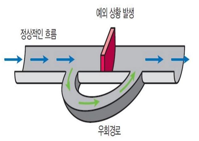 예외(exception):수습이 가능한 덜 심각한 오류.