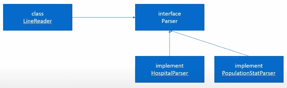 위와 같이 PopulationsStatParser(클래스) 와 같이 추가로 구현체가 생성되어도 위와 같이 LineReader나Parser를 수정하지 않아도 됨