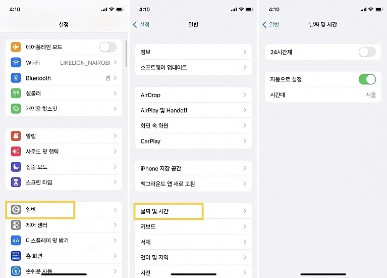 1. 설정 → 일반 → 날짜 및 시간 → 자동으로 설정 OFF