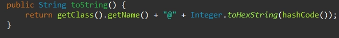 위와 같이 toString() 메소드를 출력할 경우, 클래스명과 해시코드를 16진수로 변환한 값을 출력해주는 것을 볼 수 있다.