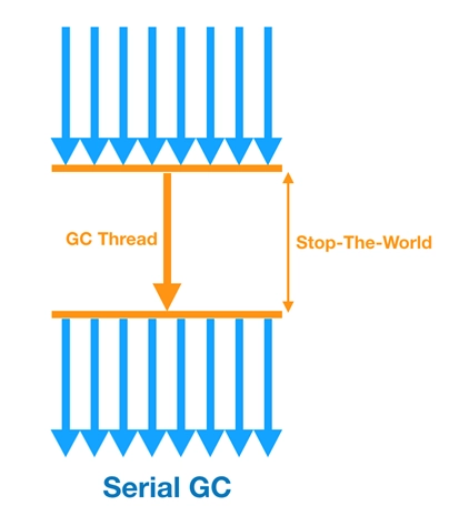gc를 실행하는 스레드를 제외한 나머지 스레드는 모두 작업을 멈추었다가 gc가 작업을 완료한 후에 다시 재개한다.