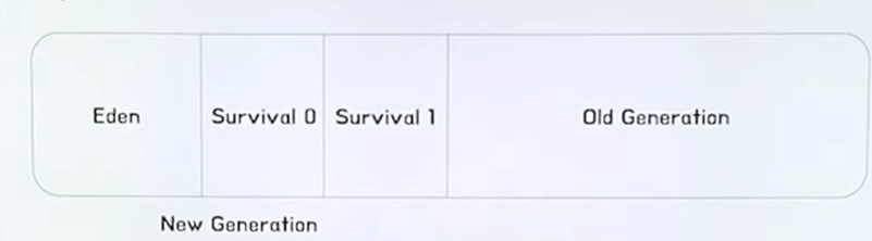 Heap은 New Generation과 Young Generation으로 나누어져 있고, New Generation은 Eden, Survival 0과 survival 1으로 나누어져 있다