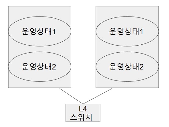 여러 시스템이 동시에 업무를 나누어 병렬 처리한다. 시스템 전체가 가동 상태로 업무를 수행하기 때문에 한 시스템에 장애가 발생해도 다른 시스템으로 작업을 이동하지 않고도 고가용성을 보장한다. 이 구조에서는 두 클러스터가 동일한 업무를 수행하기 위해 L4 스위치를 이용하여 작업을 분배한다.
