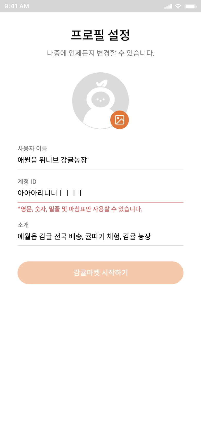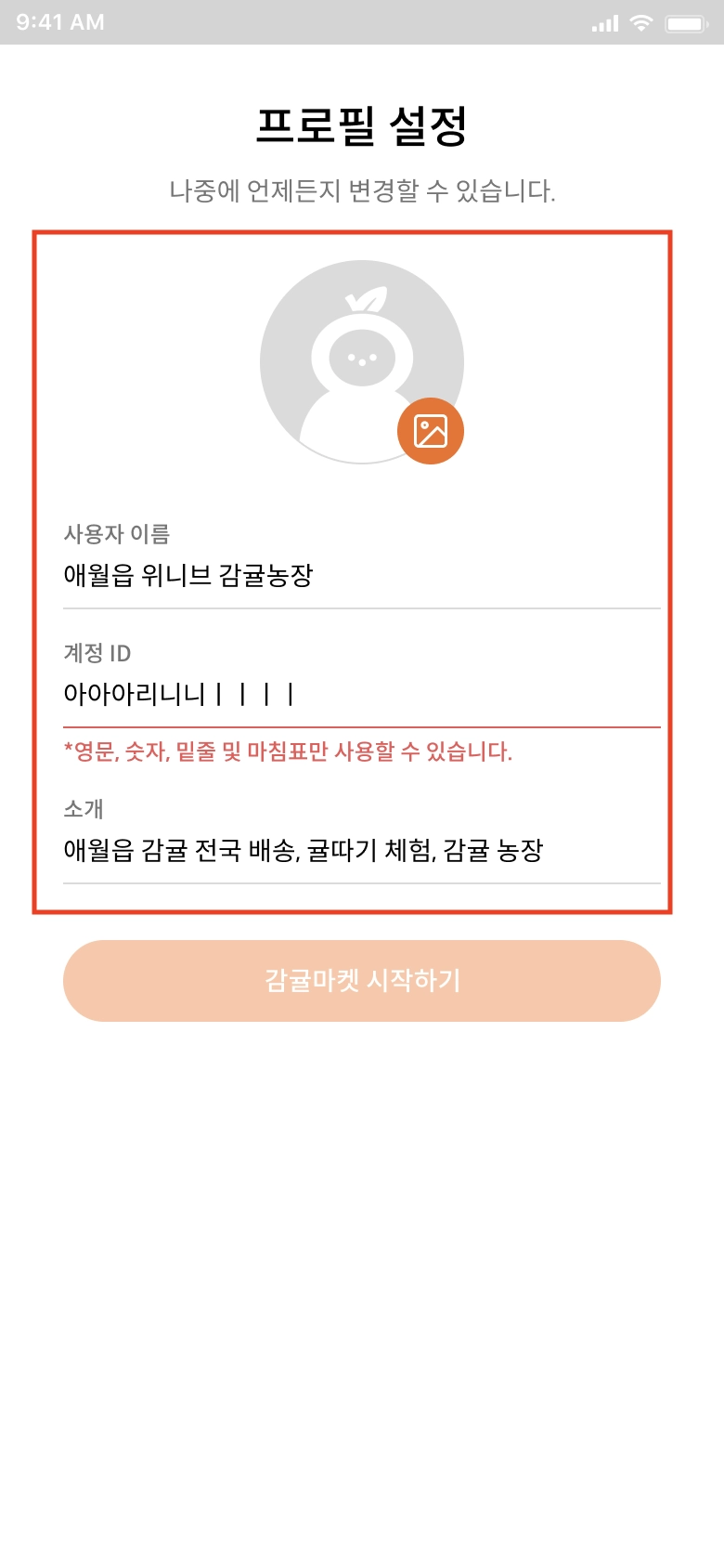 3. 회원가입시 - 감귤마켓 시작하기 버튼