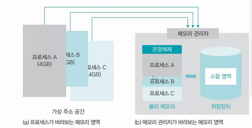 이 시스템에서 각각 4GB 주소 공간을 차지하는 10개의 프로세스를 동시에 실행하려면 운영체제를 포함해 적어도 40GB의 메모리가 필요