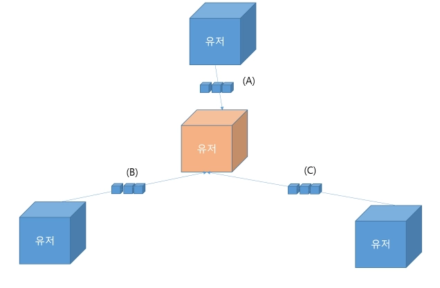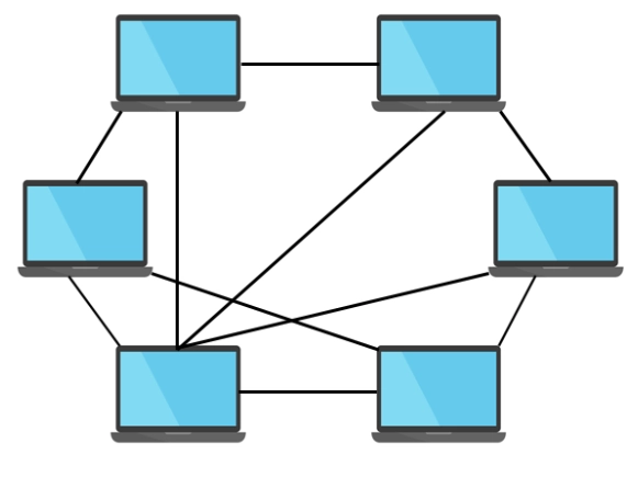 클라이언트끼리 그물망처럼 연결되어, 가지고 있는 정보를 교환하는 형태이다.