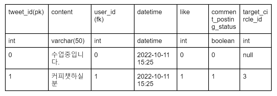 tweet_id: primary key이며 고유한 번호를 가지고 있습니다.
