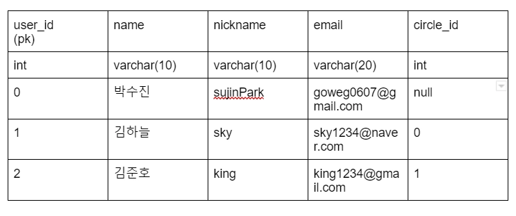 PK : Primary Key. 한개의 record또는 row를 테이블 안에서 고유하게 식별할 수 있는 인식표. PK는 중복 될 수 없다.