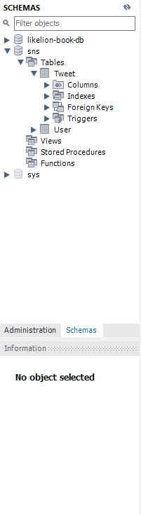 Schemas로 변경 후, 위의 칸에서 우클릭 → Create Schema 클릭
