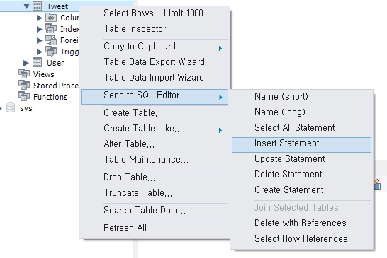 value를 추가하고 싶은 테이블 우클릭 → Send to SQL Editor → Insert Statement