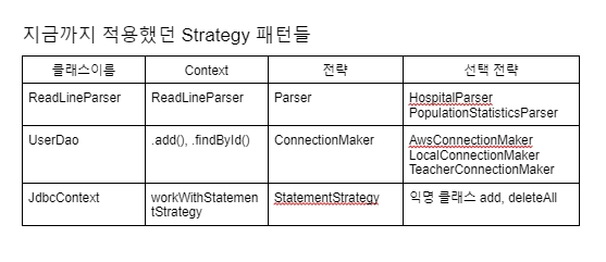 JDBC의 일반적인 작업 흐름을 담고 있는 jdbcContextWithStatementStrategy()는 다른 DAO에서도 사용 가능하다.