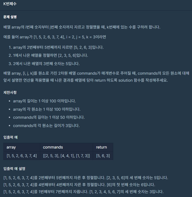 1.1 프로그래머스 - k번째 수