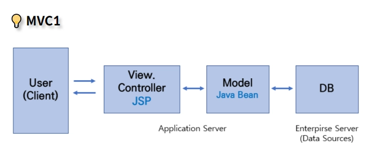 모든 클라이언트 요청과 응답을 JSP가 담당하는 구조
