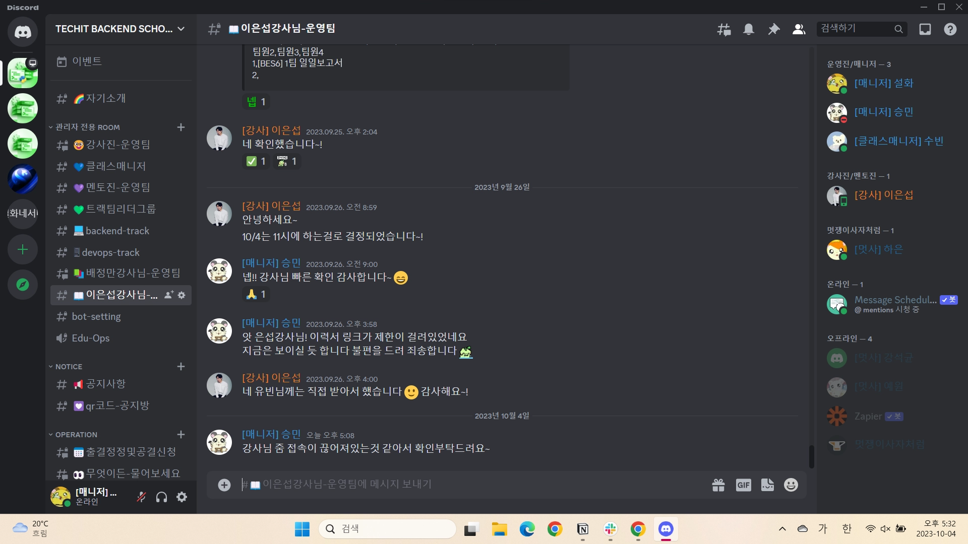(연휴나 주말) 개발 시, 원활한 소통을 위해 필수로 디코 음성 채널 상주 권유