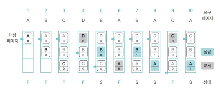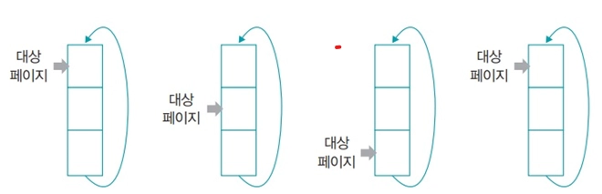 중요한 점은 참조비트가 1인데 대상 포인터로 가리키게 되면 숫자를 0으로 줄어들게 하고 포인터가 다음 페이지로 이동한다는 것.