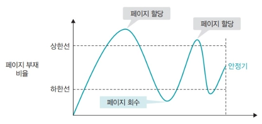페이지 부재 비율의 상한선과 하한선을 설정하여 프레임을 추가 할당/회수 한다.