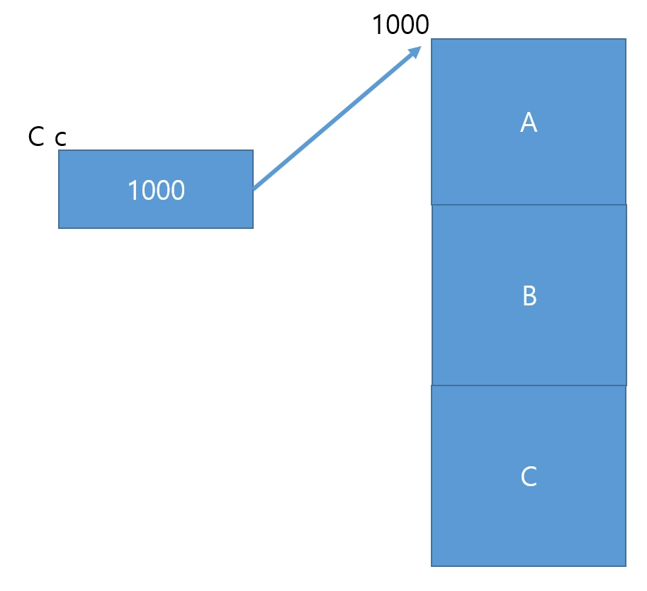 자바 문법에서 다형성은 부모 클래스 타입의 참조 변수로 자식 클래스 타입의 인스턴스를 참조하는 방식으로 구현된다. 이것을 업캐스팅(upcasting, 상형 형변환)이라고 한다.