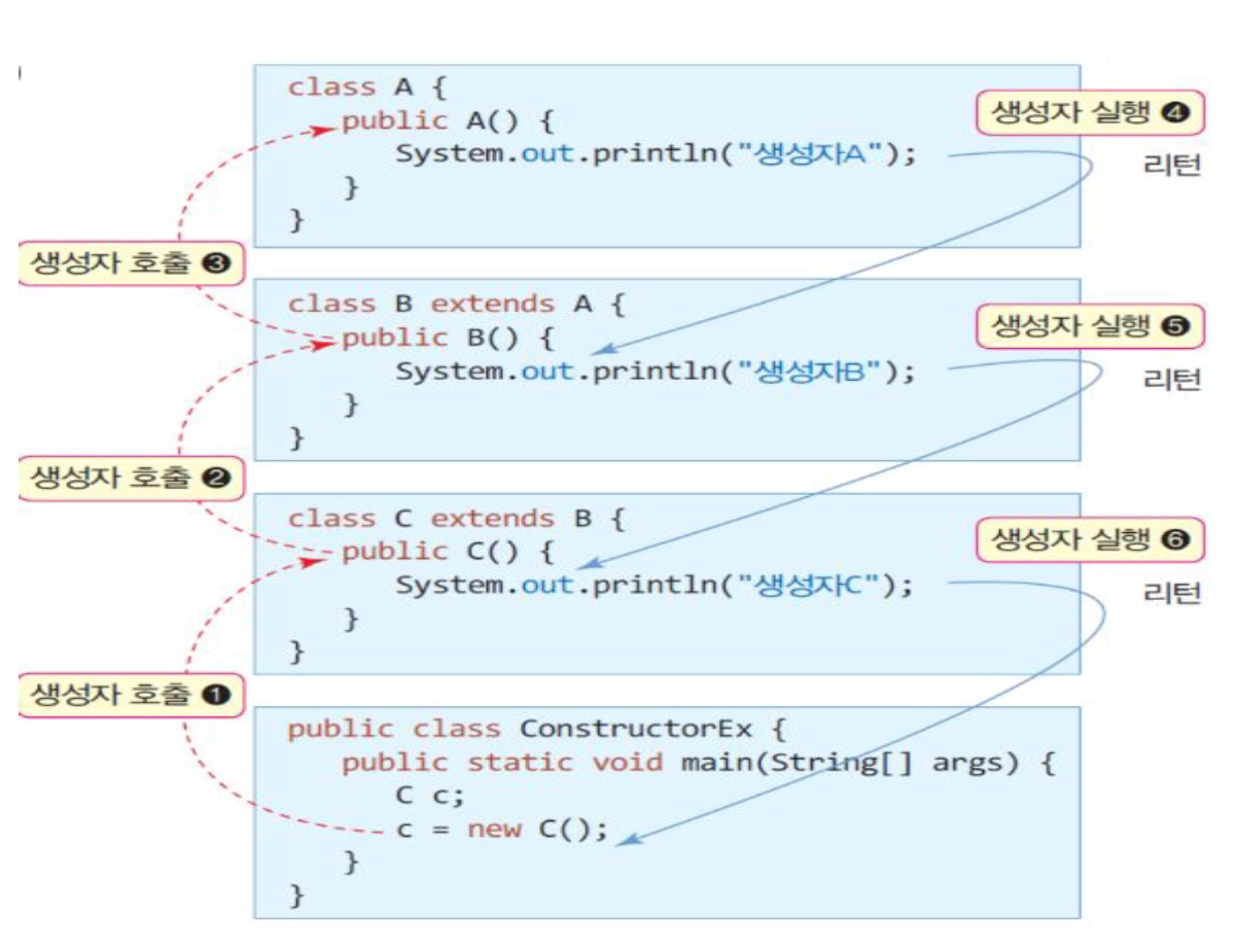 >> 부모 클래스가 먼저 메모리에 올라가기 때문에 부모 클래스 생성자가 먼저 실행