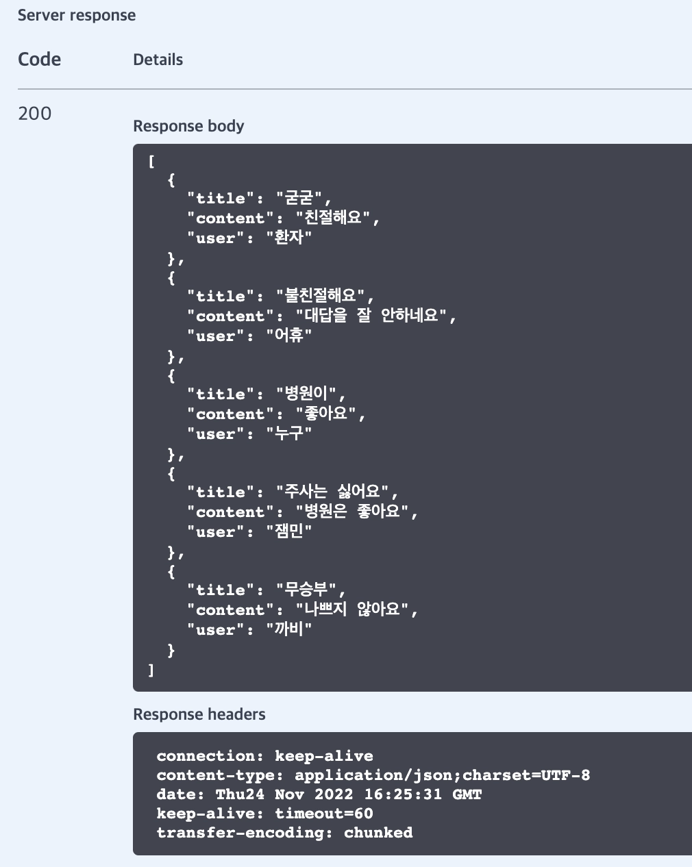 API를 이용해 특정 병원의 리뷰를 조회할 수 있다.