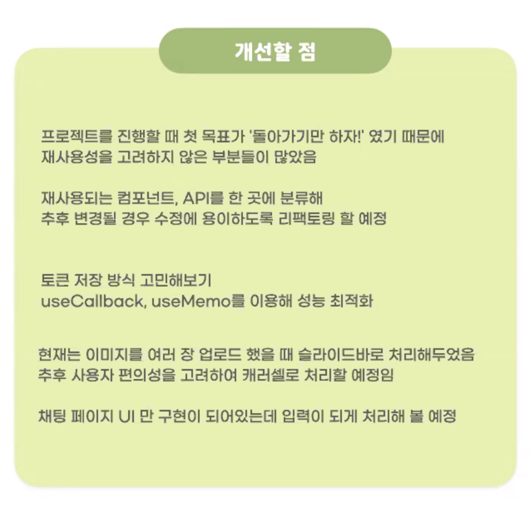 1. 백엔드 API 에 대한 설명도 프로젝트 리드미에 넣어주기. 어떤 형식으로 날라오는건지. API 관련된 내용도 넣어주기, 컨벤션 내용도 좋아. 이왕 적을 거면 세세하게 적기