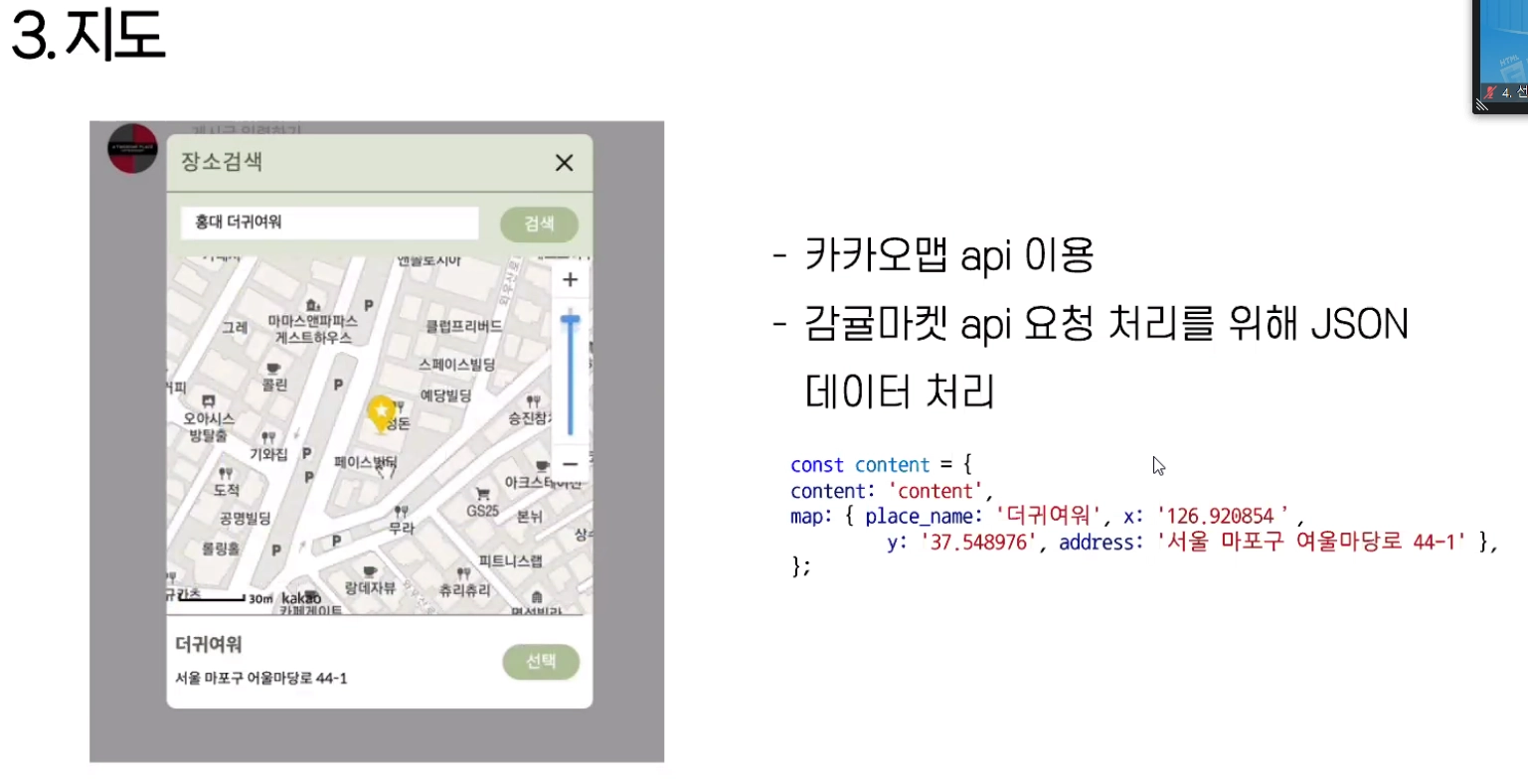 카카오맵 API 이용해서 지도 기능 활용함