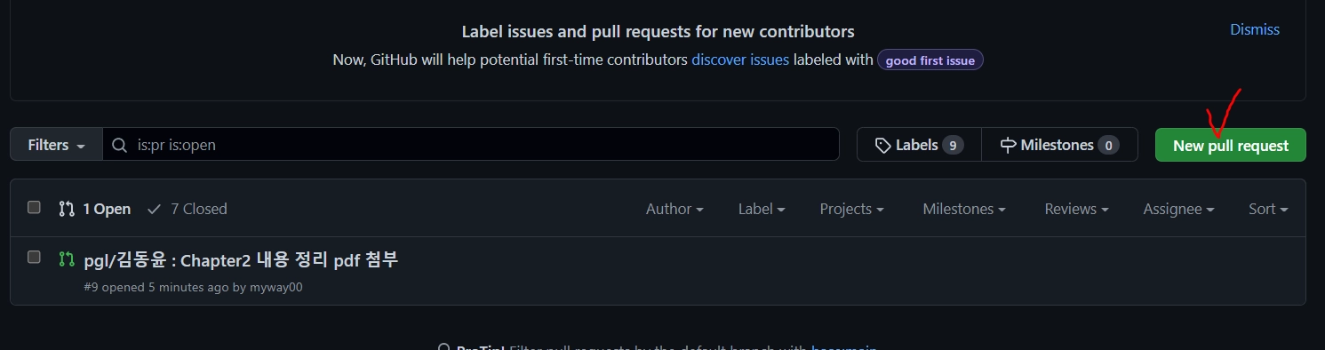 New Pull request 만들기