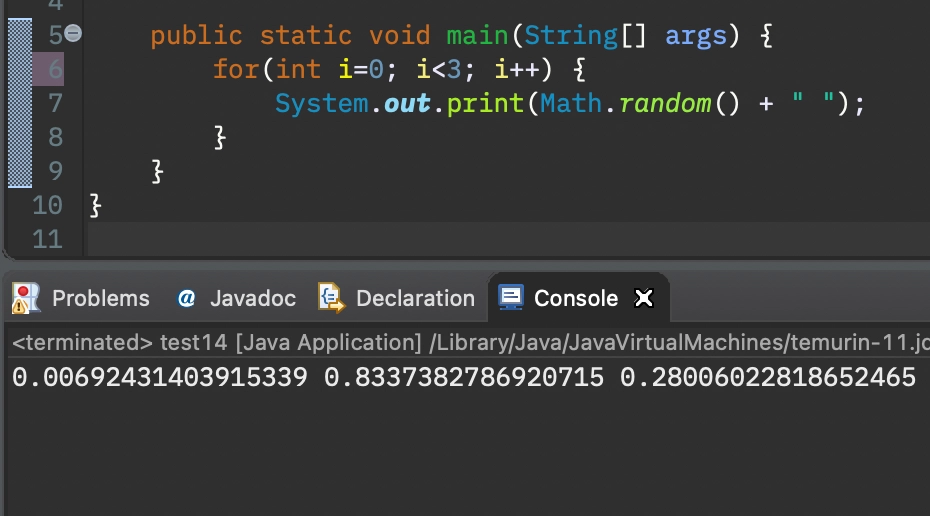 이름처럼 랜덤으로 0.0이상 1.0미만 사이의 double형 값을 반환한다