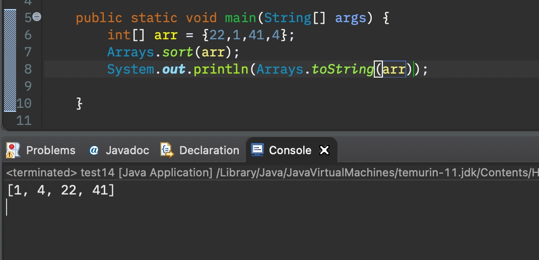 Arrays.sort(배열) : 배열을 오름차순으로 정렬해준다