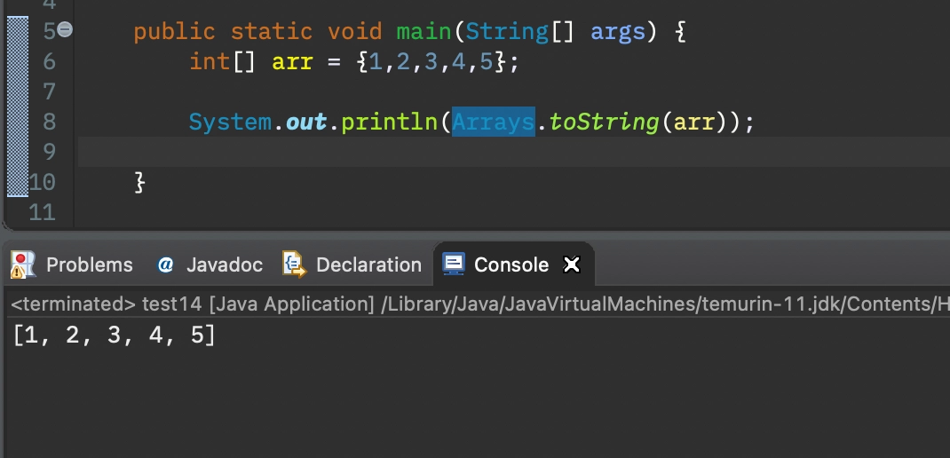 Arrays.toString(배열) : 배열을 문자열의 형태로 반환해 준다