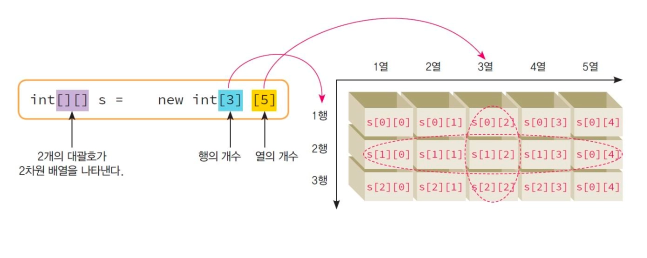 자료형[][] 변수명 = new 자료형[행의 개수][열의 개수]