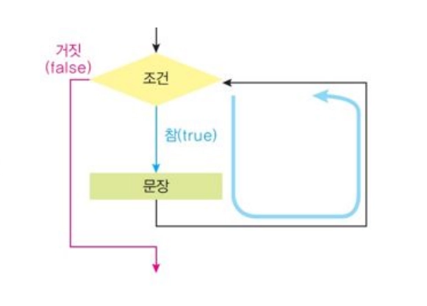 참(true)이면 ②블럭{ } 안의 문장을 수행한 후 ③다시 조건식으로 돌아간다. (조건식이 거짓이 될 때까지 반복한다)
