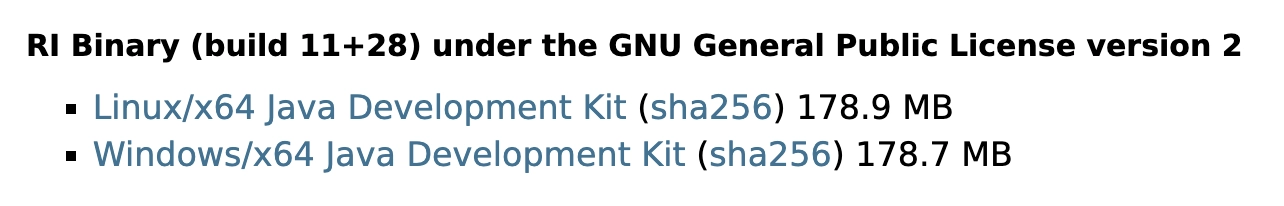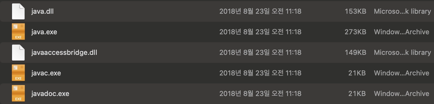 링크 중 자신의 OS에 맞는것을 선택하게 될 경우 zip 파일의 형태로 JDK가 다운로드 됩니다. 이 ZIP 파일을 압축 해제하면 안에 포함된 다양한 파일들이 JDK의 역할을 합니다.