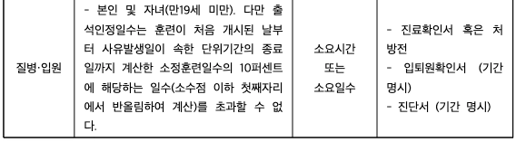 - 09월: 20 → 16일 이상 (결석 4일 초과 불가) ⇒ 최대 누적 2일 병가 가능