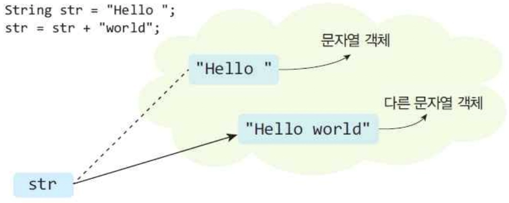 String 객체는 한 번 값이 할당되면 그 공간은 변하지 않는다.