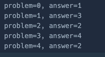 for problem, answer in enumerate(answers):