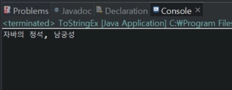객체를 문자열로 표현하여 반환하는 메소드이다. 다른 클래스에서 재정의하여 객체에 대한 설명이나 특정 멤버 변수 값을 반환하도록 만들 수 있다.