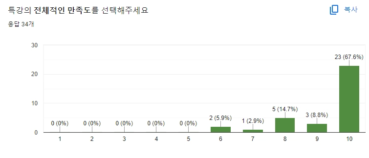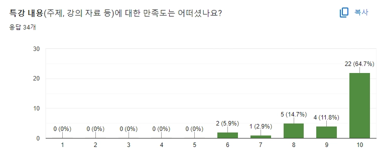 설문 참여(총 34명) / 특강 참여자: 70명