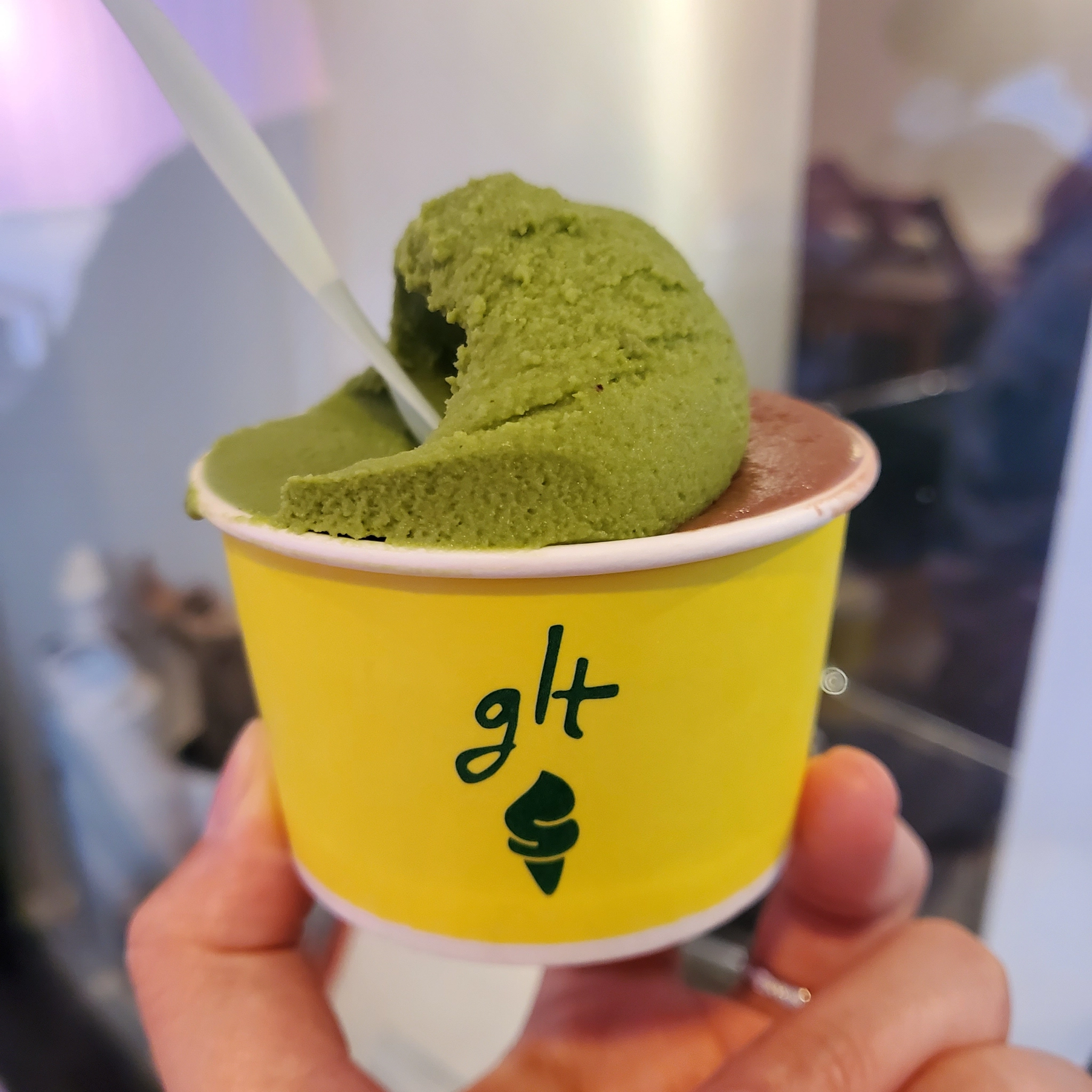홍대 어딘가에서 말차 + 초코맛 젤라또