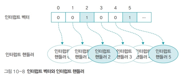 인터럽트 벡터에는 해당 인터럽트 핸들러를 호출할 수 있도록 인터럽트 핸들러가 저장된 메모리의 주소가 포인터 형태로 등록되어 있다