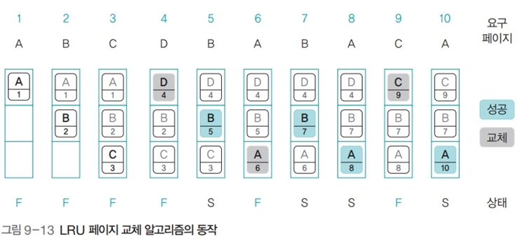 Least Recently Used: 최근 가장 적게 사용한 페이지
