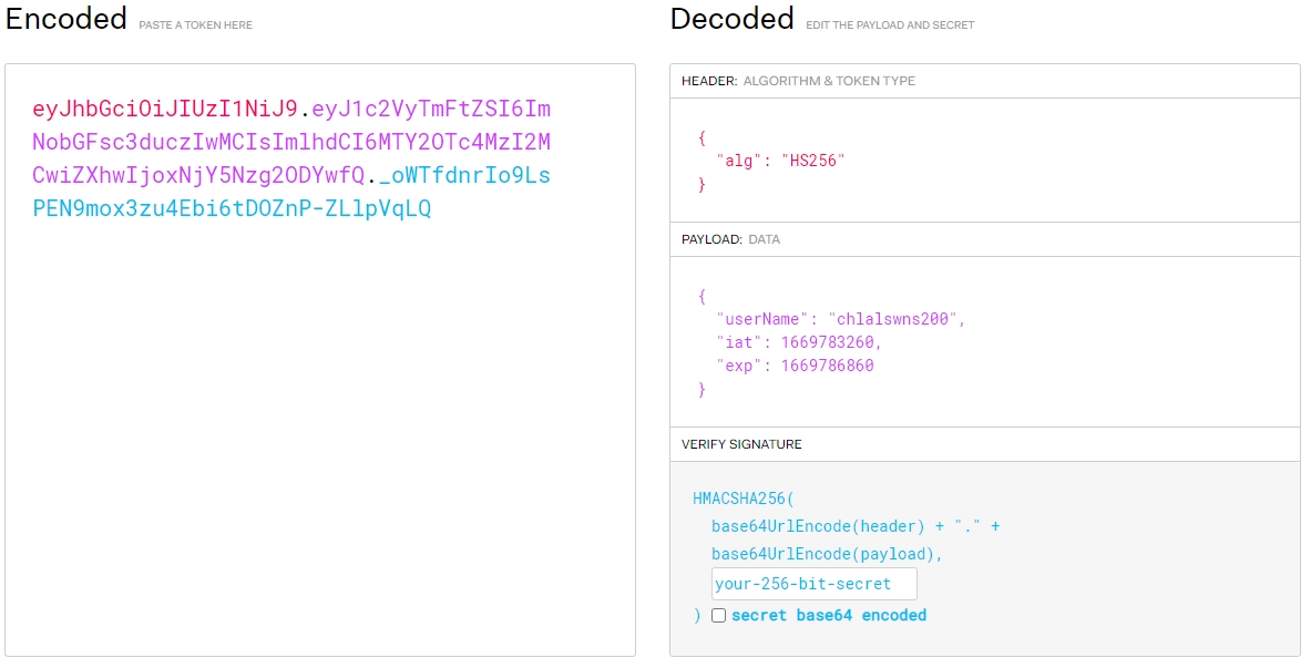 JSON Web Token은 당사자 간의 정보를 JSON형태로 안전하게 전송하기 위한 토큰
