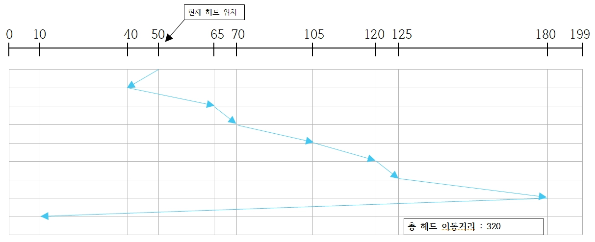 현재 헤드가 있는 위치에서 가장 가까운 트랙부터 서비스